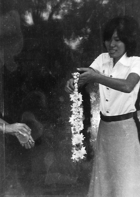 นักศึกษากำลังเตรียมดอกไม้ให้อาจารย์โจ...